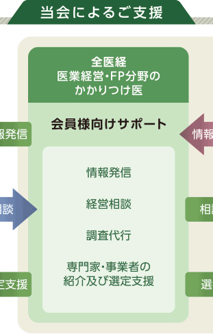当会は、ドクターの皆様にとって医療機関経営や暮らしとお金に関するお悩み事について気軽に相談でき、必要な時に信頼できる専門家の紹介を受けられる、身近にいて頼りになる“かかりつけ医”機能を果たすことを目指しています。