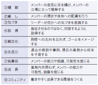 リーダーシップのスタイルは様々ですが、栗山監督のスタイルをあえて既存の類型に当てはめれば「サーバントリーダーシップ」が近いと思います。サーバントリーダーシップは、部下を支配するようなものではなく「まず相手に奉仕し、その後にチームを先導するリーダーシップ」スタイルで、その特徴は以下の9個です。