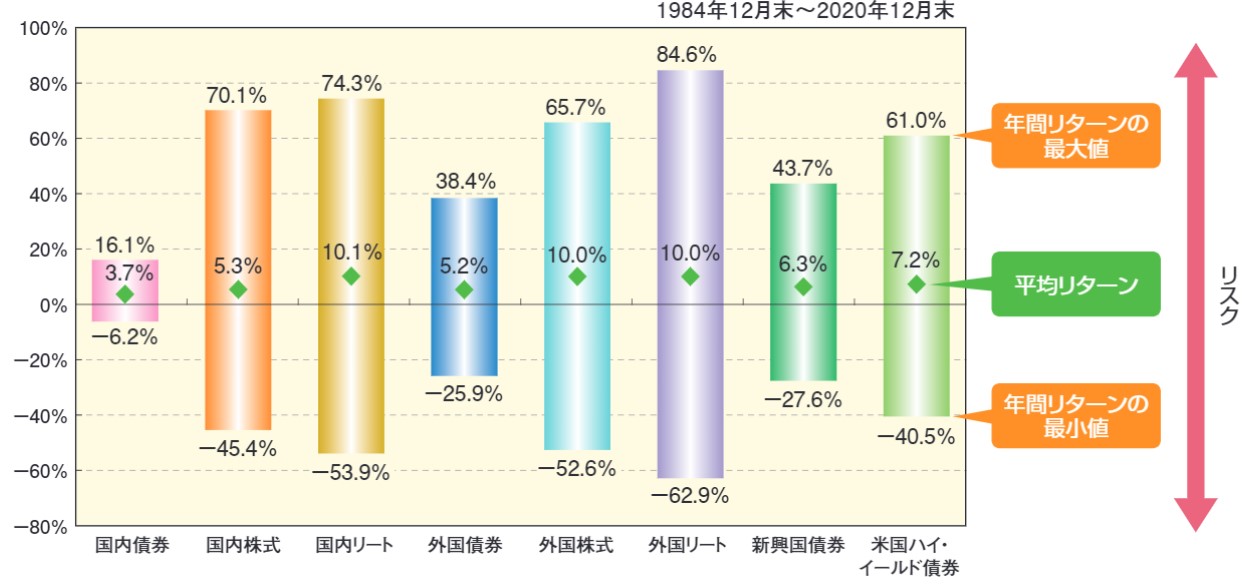 図 各資産を1年間保有した場合の年間リターンの振れ幅
